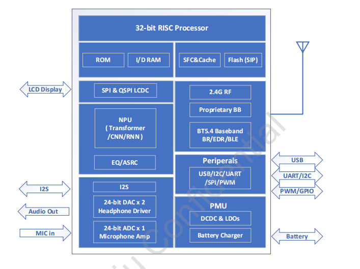 WS310 搭载高性能 RISC 处理器和节能的 NPU,并针对设备端 AI 计算进行了优化。NPU 旨在高效运行基于 Transformer 的神经网络模型,从而实现高级降噪和语音增强等智能功能,并具有出色的能效。